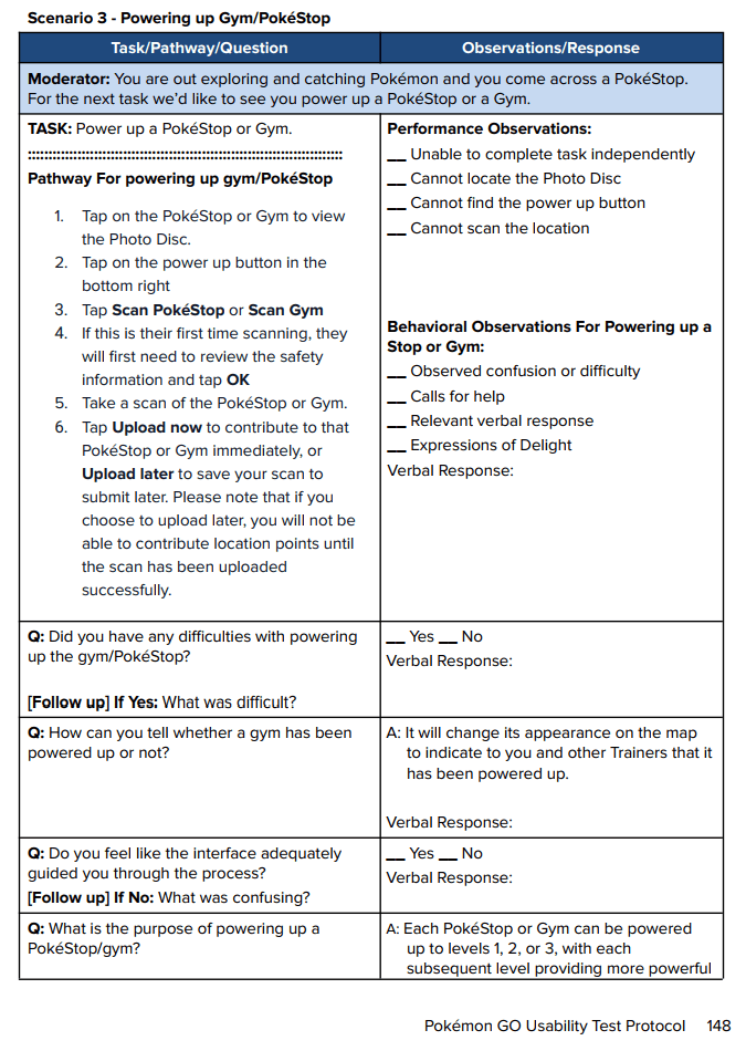 Our motivations behind this usability test were to evaluate Pokémon GO’s user interface in manner that aligns with Niantic’s mission statement of “inspiring movement, exploration, and face-to-face social interaction.”