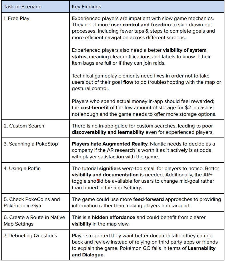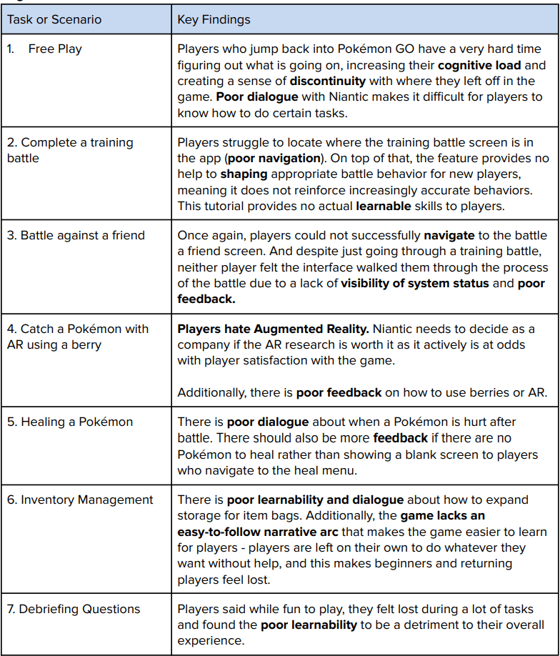 Conduct a usability test for Pokémon GO to illuminate usability issues with an emphasis on key dimensions including learnability, discoverability, and navigation.