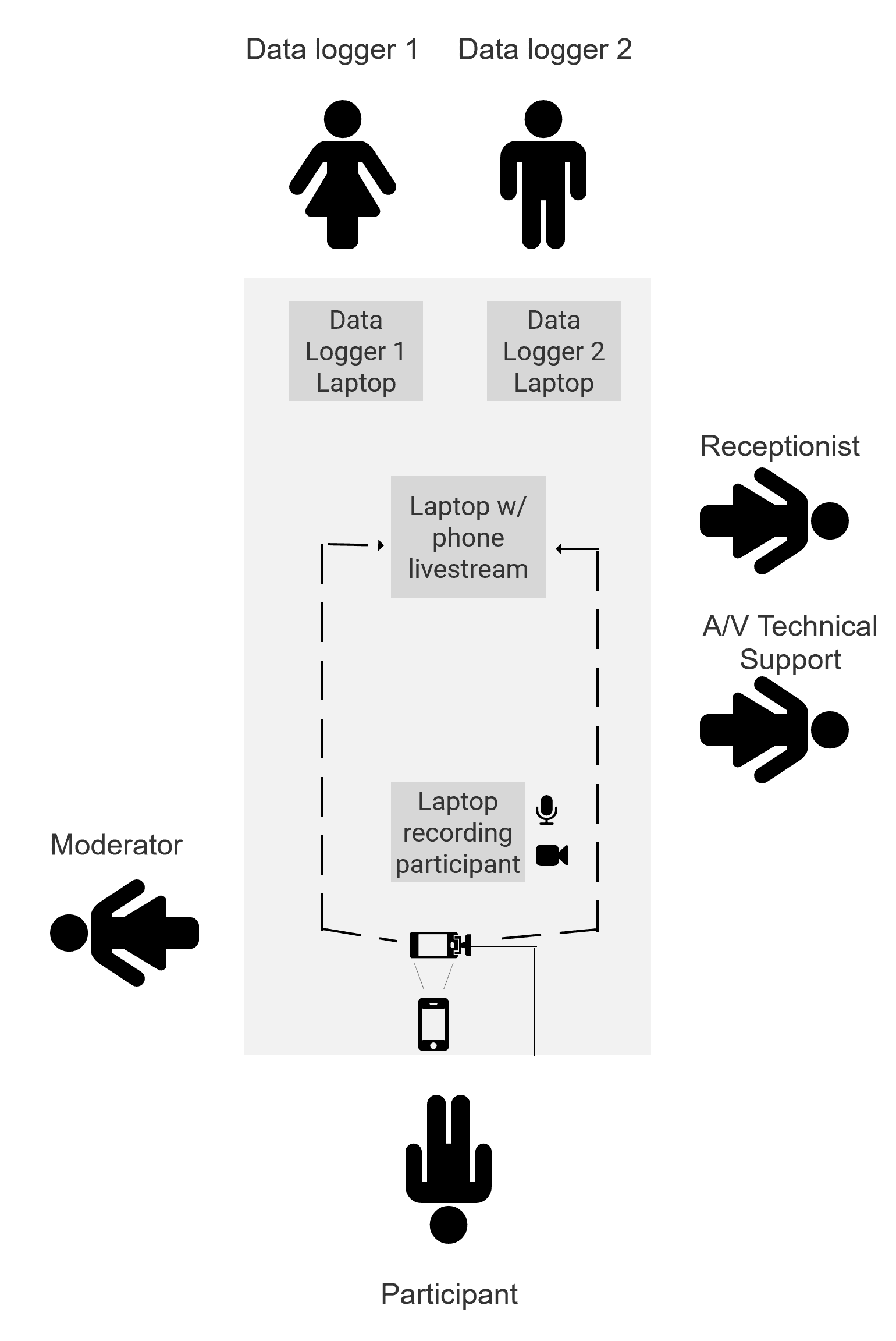 One AV support / Operations lead: Monitored the video recordings and audio to ensure that all the data was accurately captured for later review + dealt with participants checking in + compensation